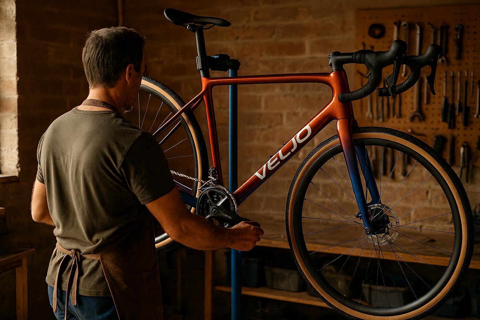 Jedes Komplettvelo von Veljo wird individuell konfiguriert, mit unserem Custom-Carbonrahmen, Veljo Laufrädern und wahlweise SRAM- oder Shimano-Schaltgruppen in drei Preisklassen.